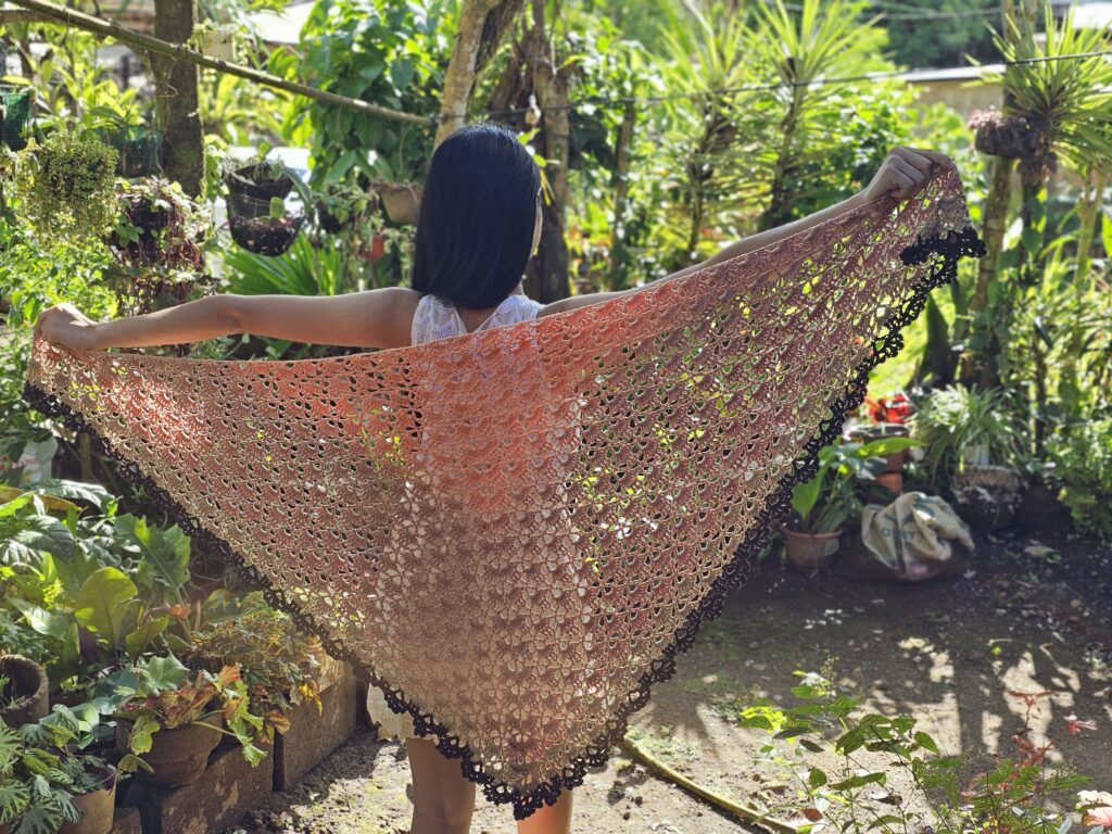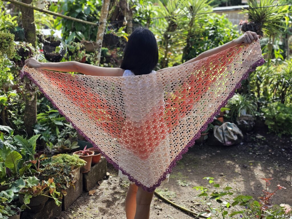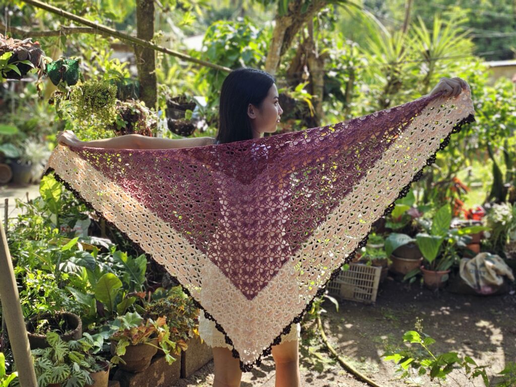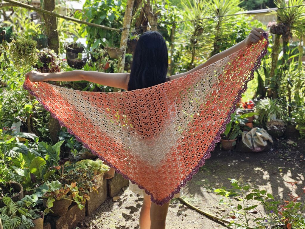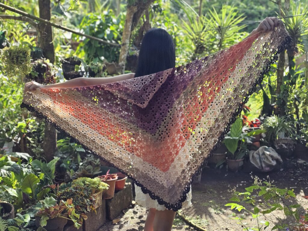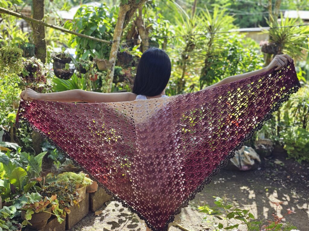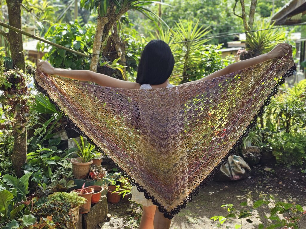 During my crochet learning journey a few years ago, while I was living in the Philippines, I created around fifteen of these shawls, each one helping me grow more confident and inspired with every stitch. The yarn skeins I used were all hand-rolled, featuring beautifully unique color transitions that made every piece feel truly one of a kind. Watching those colors unfold as I worked was such a rewarding experience, and it made each shawl even more special to give. In the end, they became heartfelt Christmas gifts for my extended family, with something handmade, unique, meaningful, and filled with both love and creativity.